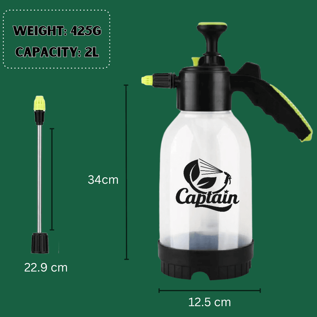 The Captain™ 2L Heavy Duty Pressure Sprayer (CRYSTA) is built for professional performance and everyday reliability. Designed with a durable 2-litre tank and a high-quality aluminium lance, it ensures smooth, precise, and long-distance spraying. Perfect for applying pesticides, fertilizers, or cleaning solutions — ideal for both home and garden use.