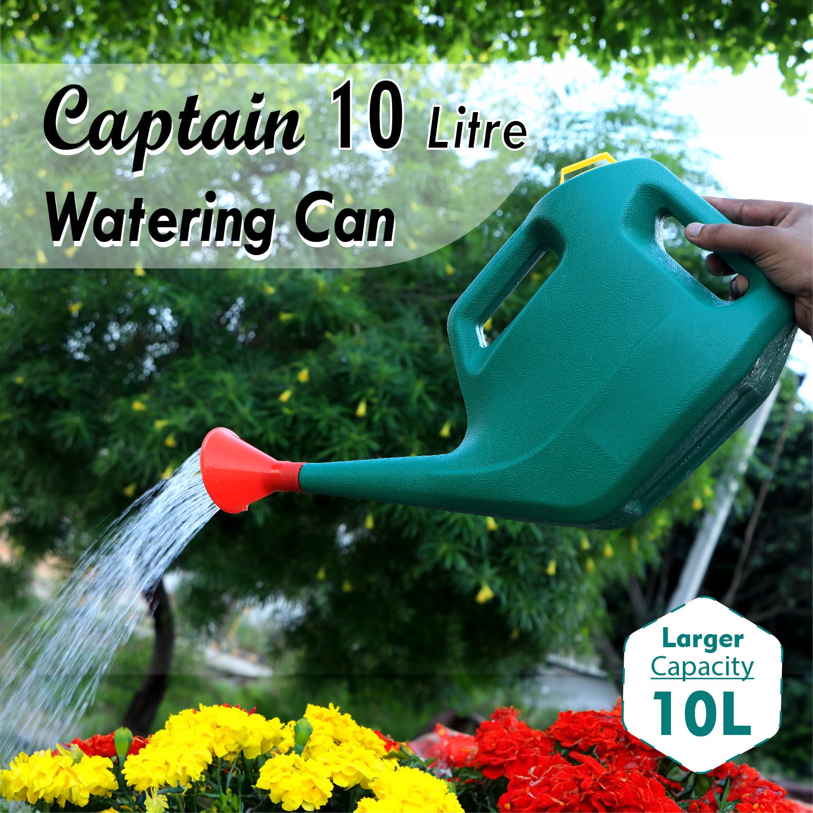 The Captain™ Garden Watering Can 10 Litre is built for strength, capacity, and comfort. Designed for professional gardeners and home users alike, it delivers a smooth and controlled water flow for plants, lawns, and flower beds. Its sturdy plastic construction ensures long life and effortless use even when filled to capacity.
