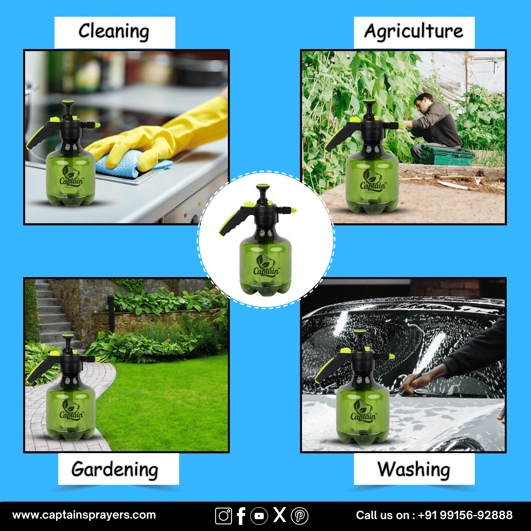 Multipurpose Use: Gardening, sanitizing, pesticide spraying, and household cleaning